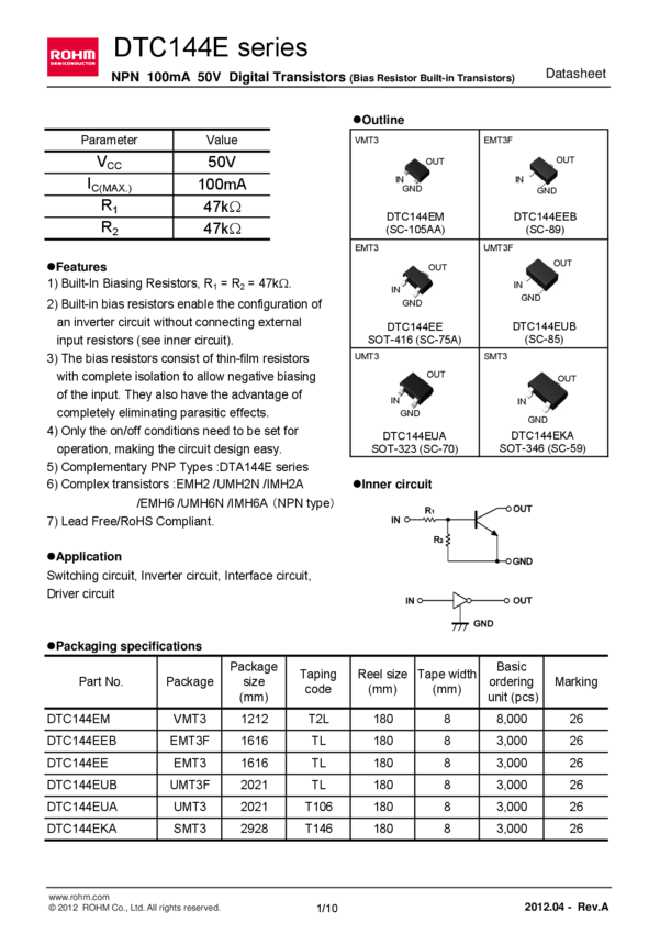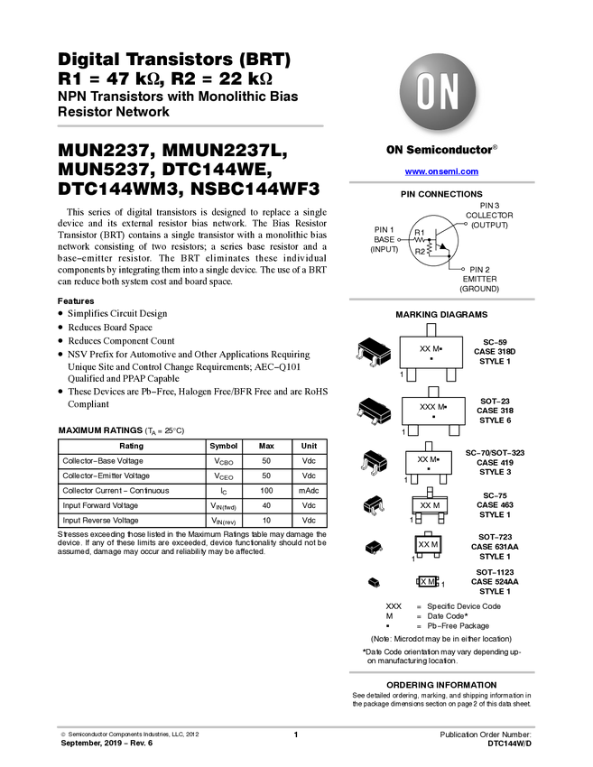 Trans Digital BJT NPN 50V 100mA 3-Pin SMT T/R