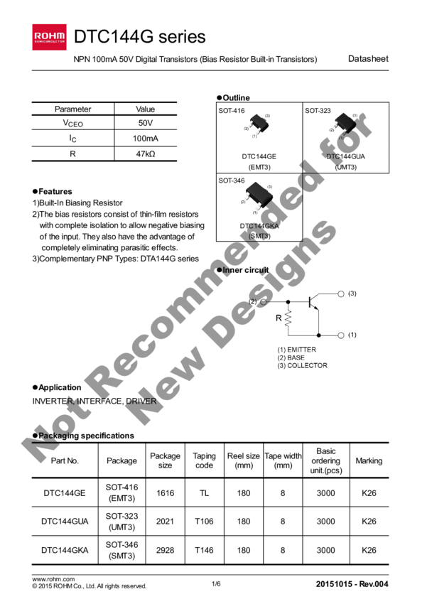 Trans Digital BJT NPN 100mA 3-Pin SOT-323 T/R