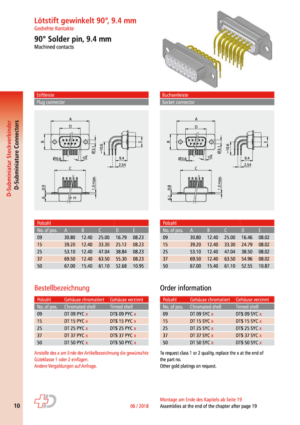 Deltron Connectors DTS09 PY/2 M85UN Złącze męskie D-Sub, rzędy: 2, styki: 9, 180 °, 1 szt.