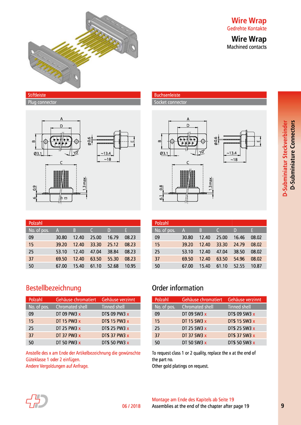 Deltron Connectors DTS09 PW3/2 Złącze męskie D-Sub 180 ° Ilość styków: 9 lutowane, Wire-Wrap 1 szt.