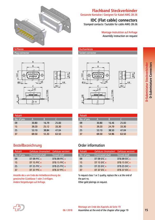 Deltron Connectors DTS09PFC/2 Złącze męskie D-Sub 180 ° Ilość styków: 9 połączenie IDC 1 szt.