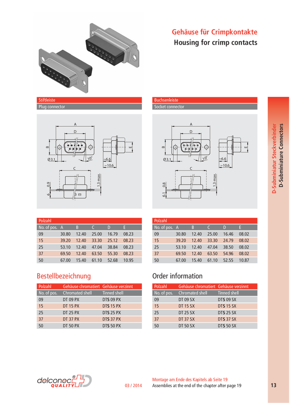 Deltron Connectors DTS09 PX Złącze męskie D-Sub 180 ° Ilość styków: 9 zaciskane 1 szt.