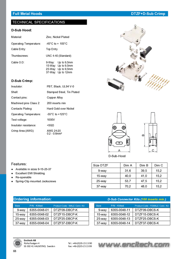 encitech 6355-0048-01 Zestaw listew męskich D-Sub DTZF09-DBCP-K, rzędy: 2, styki: 9, 180 °, 1 szt.