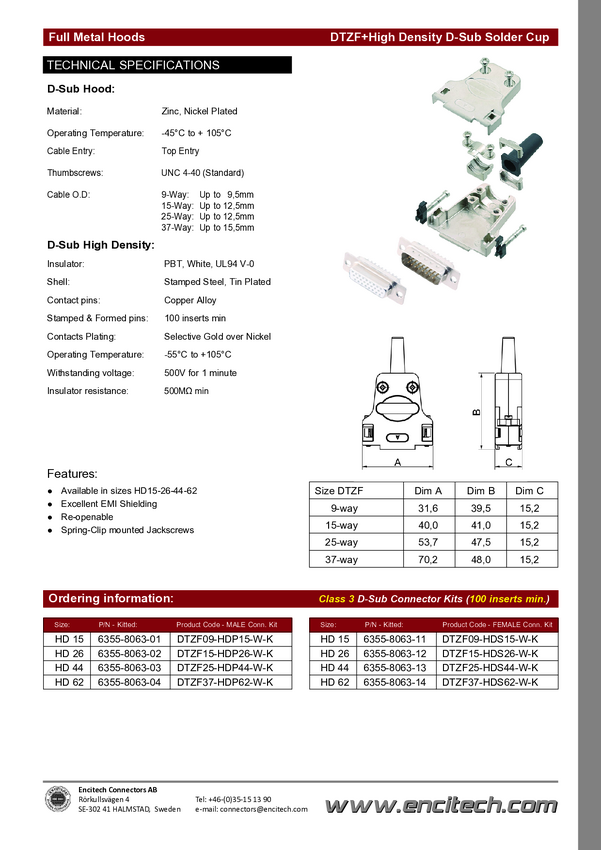 encitech 6355-8063-01 Zestaw listew męskich D-Sub DTZF09-HDP15-W-K, rzędy: 3, styki: 15, 180 °, 1 szt.