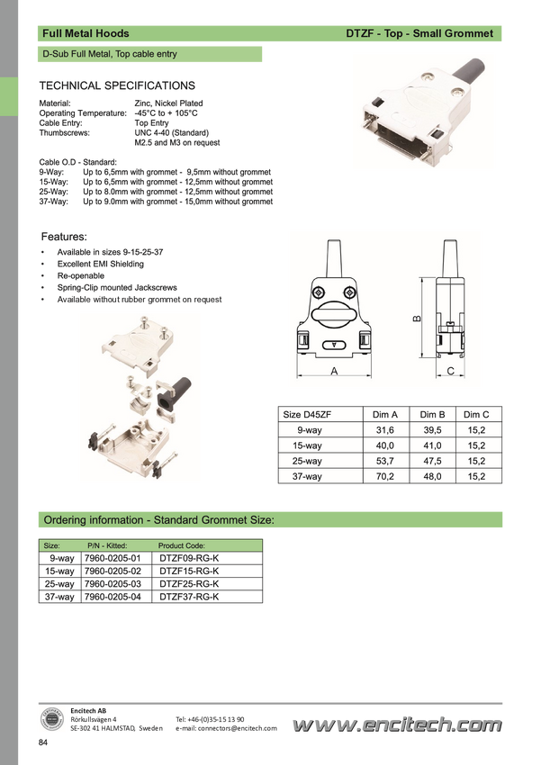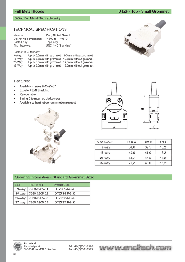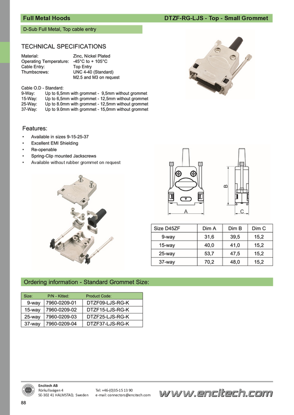 encitech 7960-0209-01 Obudowa złącza D-SUB DTZF09-RG-LJS-K, odlew cynkowy, 180 °, 1 szt.