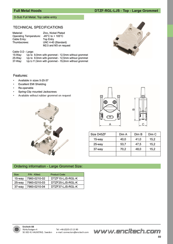 encitech 7960-5210-03 Obudowa złącza D-SUB DTZF25-LJS-RGL+M3-K, odlew cynkowy, 180 °, 1 szt.