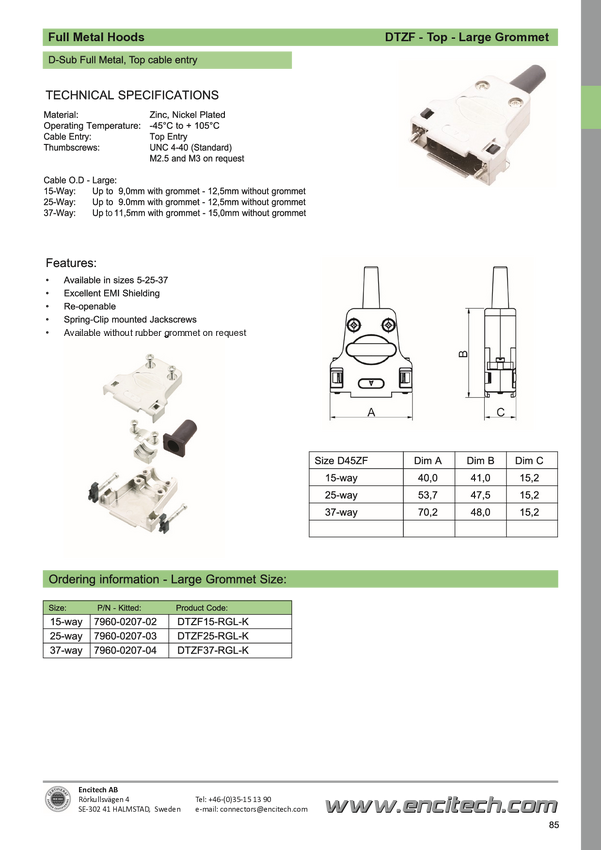 encitech DTZF25-RGL-K 7960-0207-03 Obudowa złącza D-SUB Ilość styków: 25 odlew cynkowy 180 ° metal 1 szt.