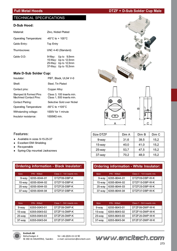encitech 6355-8045-03 Zestaw listew męskich D-Sub DTZF25-DMP-W-K, rzędy: 2, styki: 25, 180 °, 1 szt.