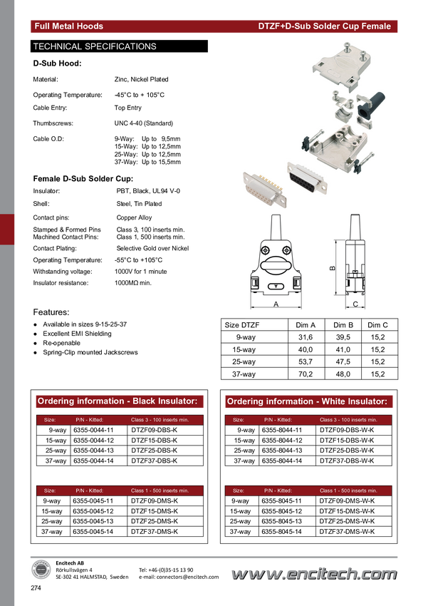 encitech DTZF25-DMS-W-K 6355-8045-13 Zestaw listew żeńskich D-Sub 180 ° Ilość styków: 25 kielich lutowniczy 1 szt.