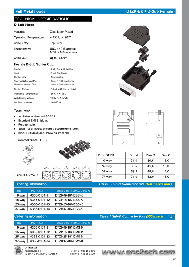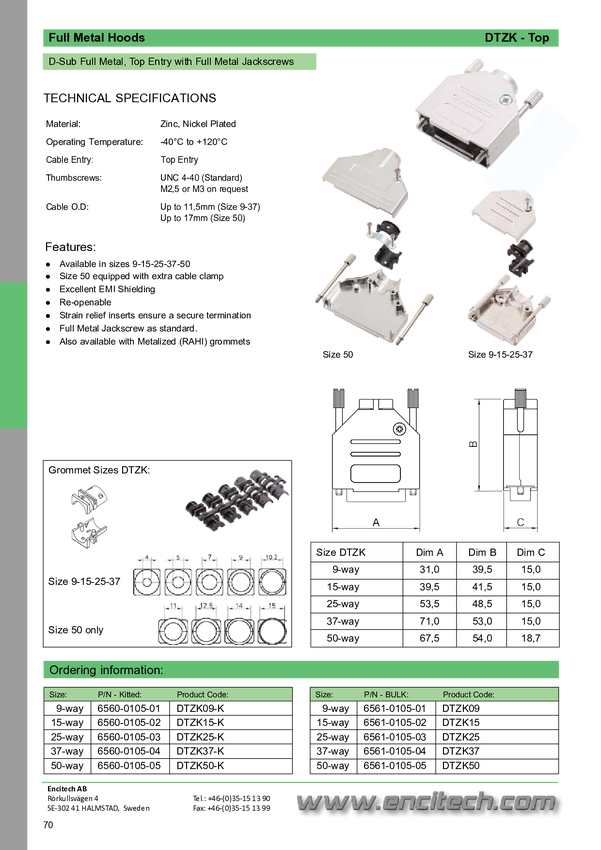encitech DTZK09-PCLG-K 6560-6105-01 Obudowa złącza D-SUB Ilość styków: 9 odlew cynkowy 180 ° metal 1 szt.