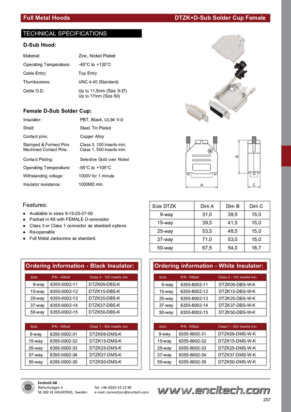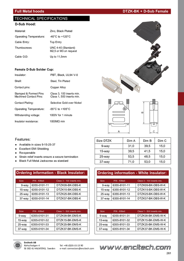 encitech DTZK09-BK-DBS-W-K 6355-8101-11 Zestaw listew żeńskich D-Sub 180 ° Ilość styków: 9 kielich lutowniczy 1 szt.
