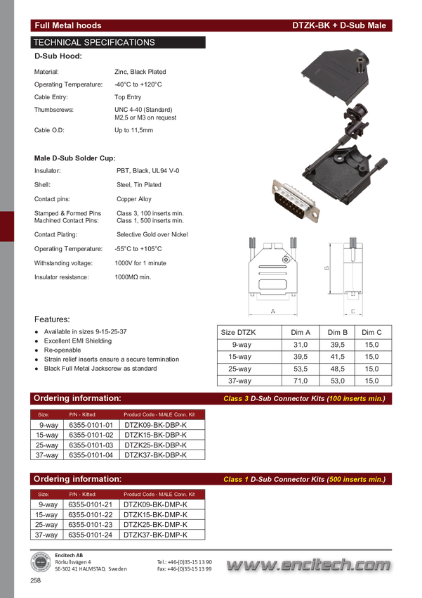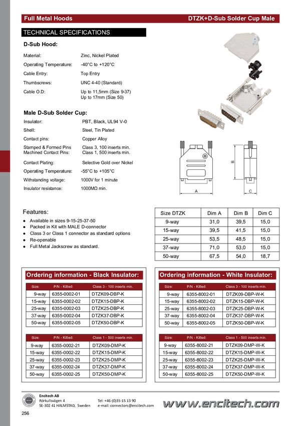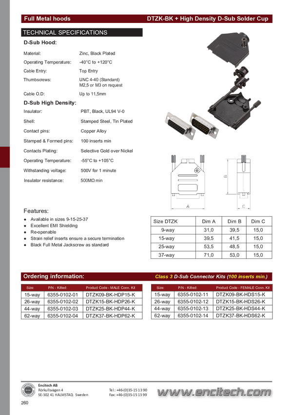 encitech DTZK09-BK-DMP-K 6355-0101-21 Zestaw listew męskich D-Sub 180 ° Ilość styków: 9 kielich lutowniczy 1 szt.