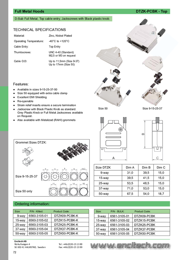 encitech DTZK09-PCBK-K 6560-3105-01 Obudowa złącza D-SUB Ilość styków: 9 metal 180 ° srebrny 1 szt.