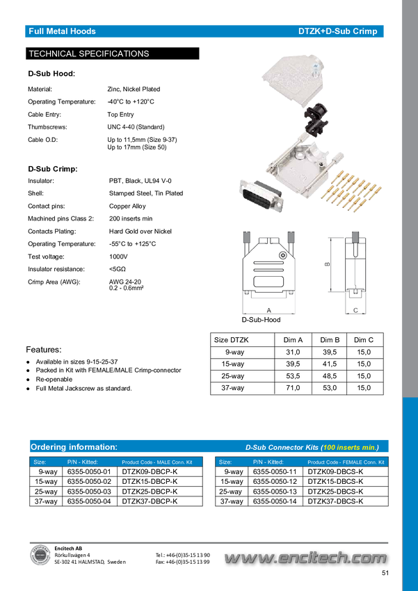 encitech DTZK37-DBCP-K 6355-0050-04 Zestaw listew męskich D-Sub 180 ° Ilość styków: 37 zaciskane 1 szt.