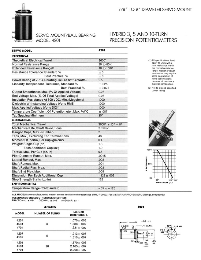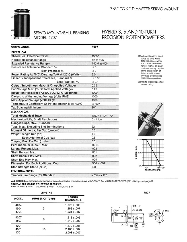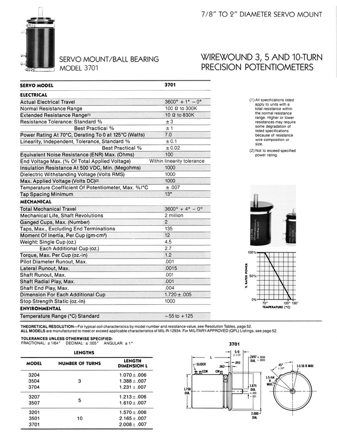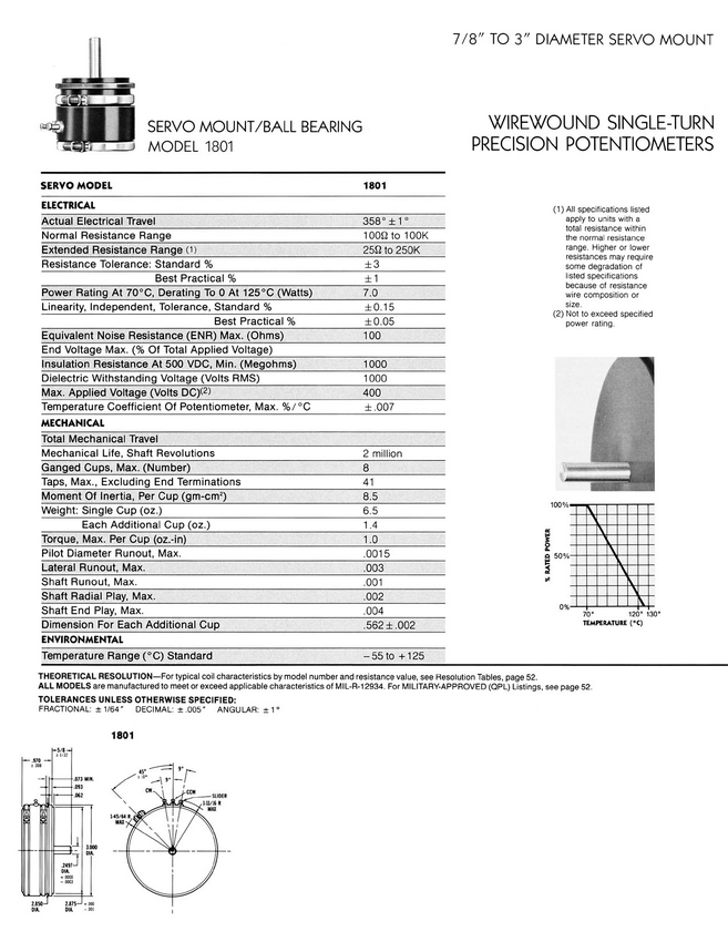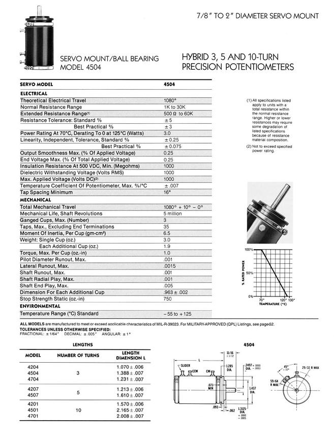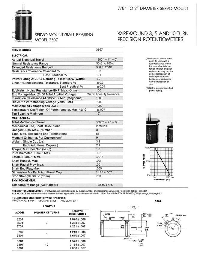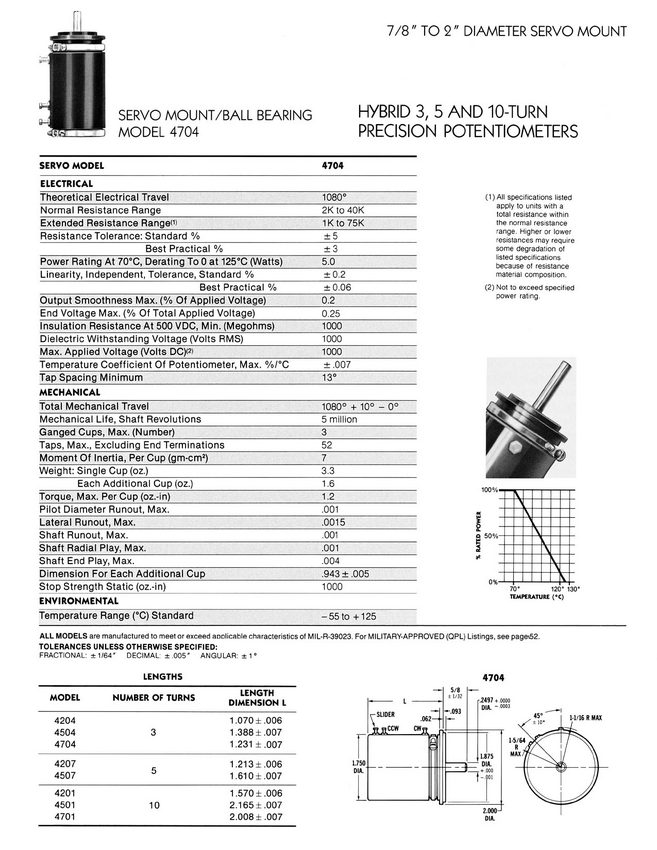 Potencjometr Servo 19,02mm rezystancja 5 kohm Tolerac. +-4% 10 obrotowy, średnica 0,875"=22mm, gł.1,625"=42mm ; ośka 3,1 7mm; Liniowość 0,05%; Duncan Potencjometr nieprodukowany do wyczerpania magazynu dostawcy 5905-00-632-3548