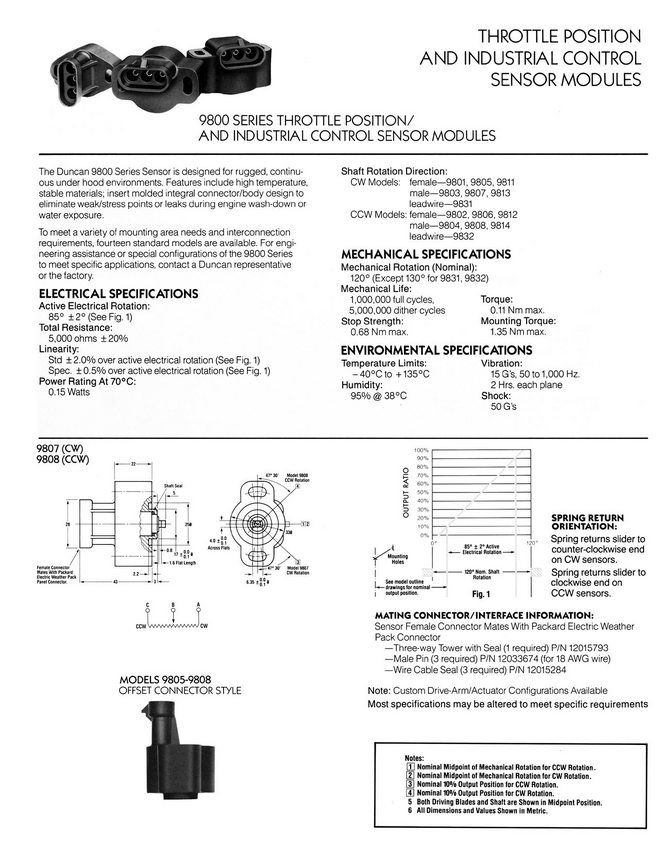 Przemysłowy czujnik pozycji do złącz hermetycznych CW model Kąt elektryczny 85+-2 st. mech. 120 st. Rezystancja 5 kohm, -40+135 st; wilg. 95%; sprężyna powrotna Shaft rot.dir. CW model Female