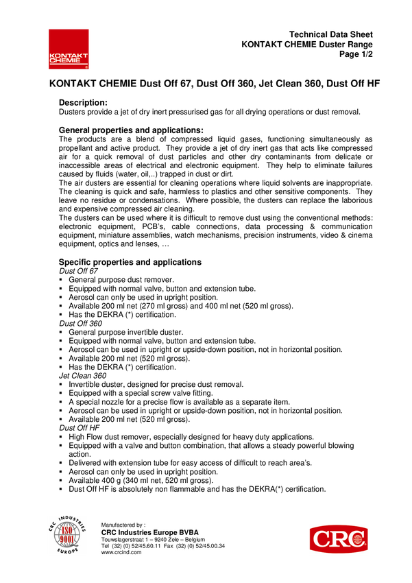 Spray ze sprężonym gazem Kontakt Chemie DUST OFF 67 33163-AB 200 ml