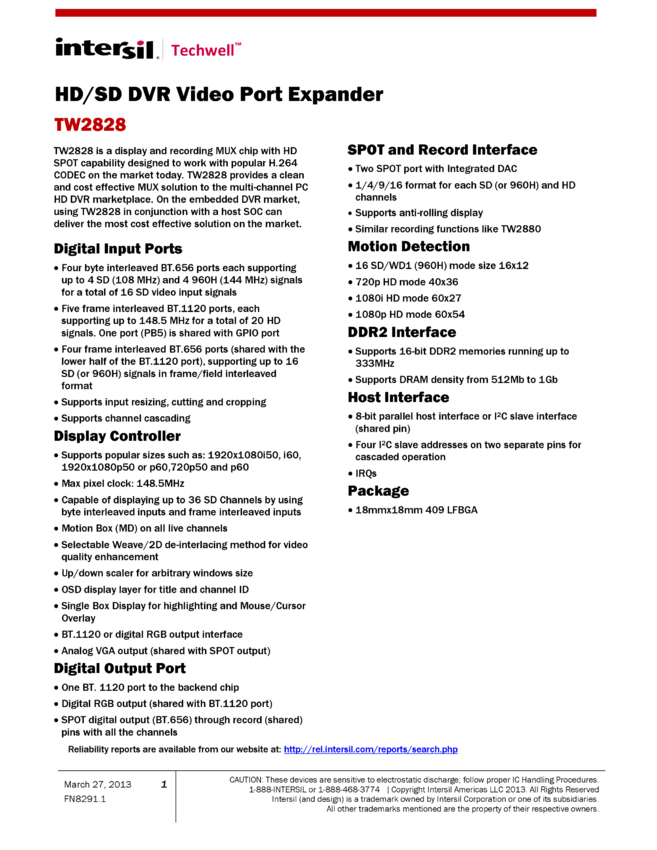 Advanced Multi-Channel HD Display/Record/Playback Controller IC for Next Generation 16-Channel DVR Applications