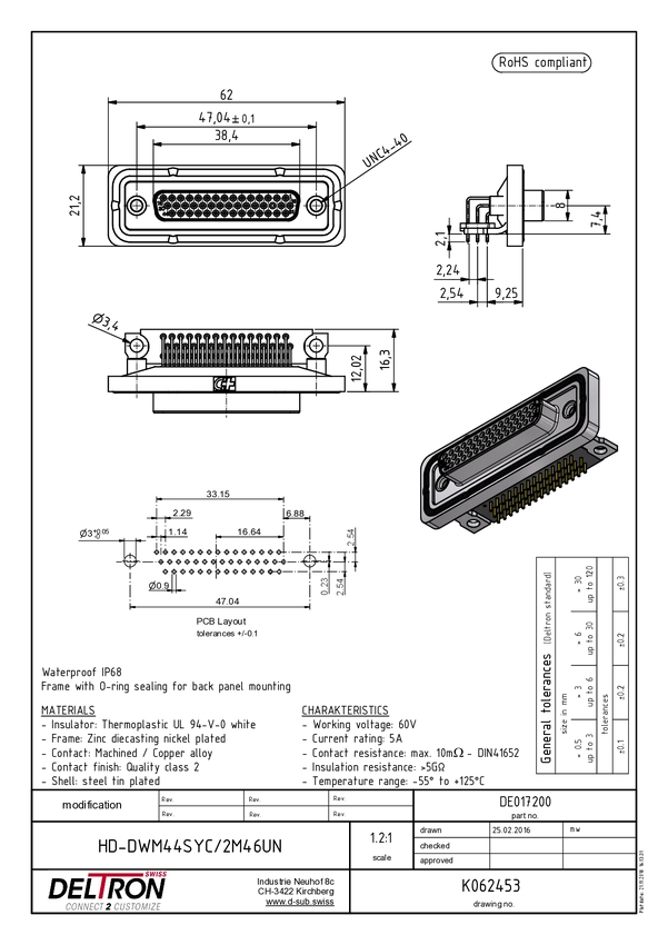 Deltron Connectors Deltron HD-DWM44SYC/2M46UN Złącze żeńskie D-Sub 90 ° Ilość styków: 44 lutowane, piny 1 szt.