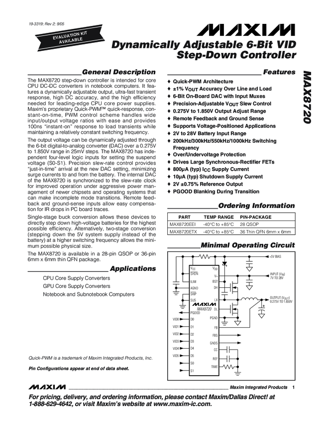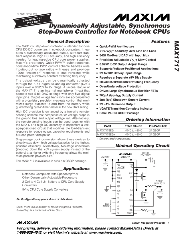 Dynamically Adjustable, Synchronous Step-Down Controller for Notebook CPUs