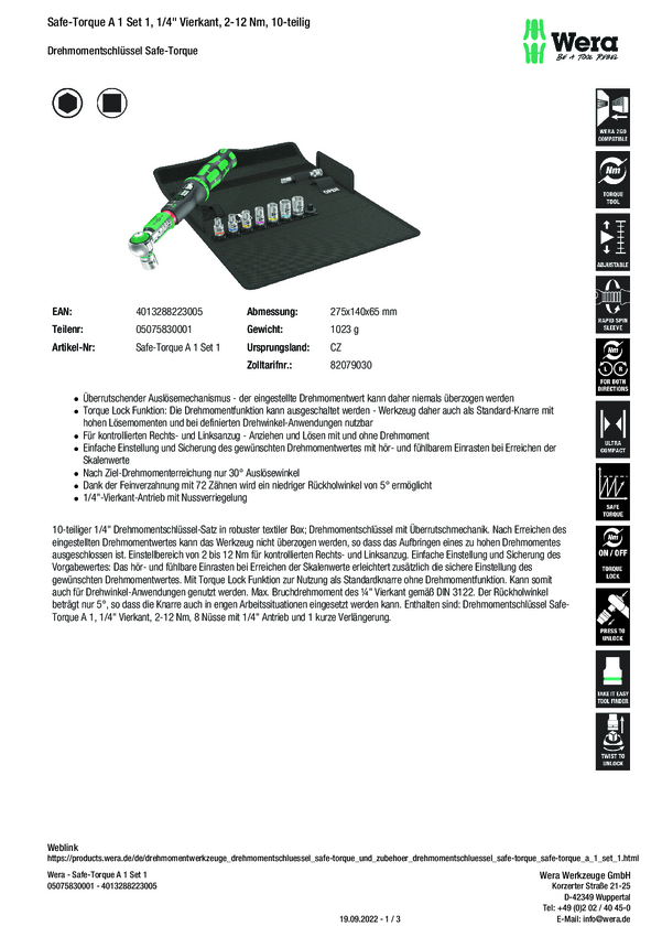 Klucz dynamometryczny zestaw Wera Safe-Torque A 1 05075830001, 2 - 12 Nm