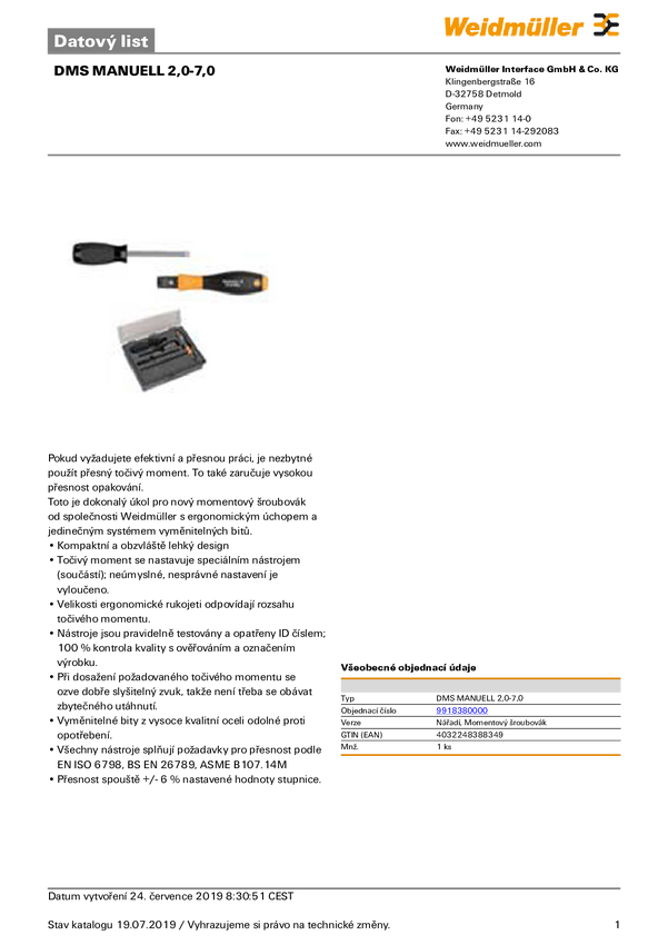 Zestaw wkrętaków dynamometrycznych Weidmüller DMS MANUELL 2,0-7,0 9918380000
