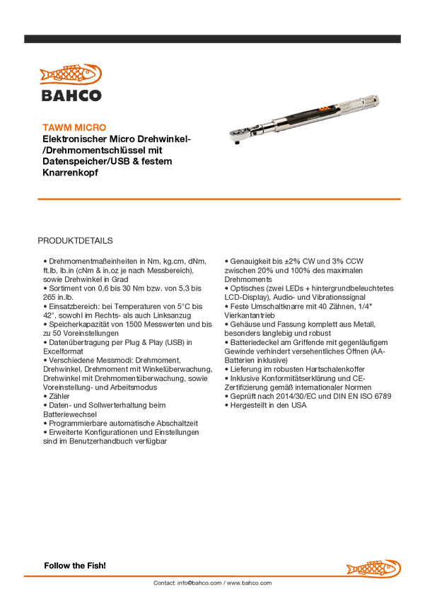 Bahco TAWM1412M Klucz dynamometryczny z grzechotką 1/4" (6.3 mm) 0.6 - 12 Nm