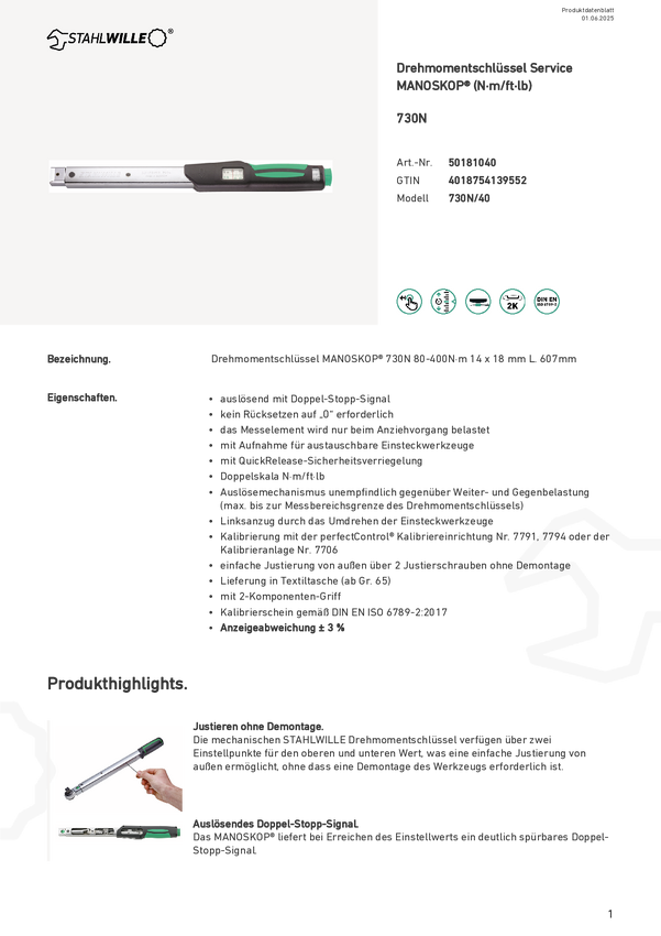 Klucz dynamometryczny Stahlwille 730N/40 50181040, 80 - 400 Nm