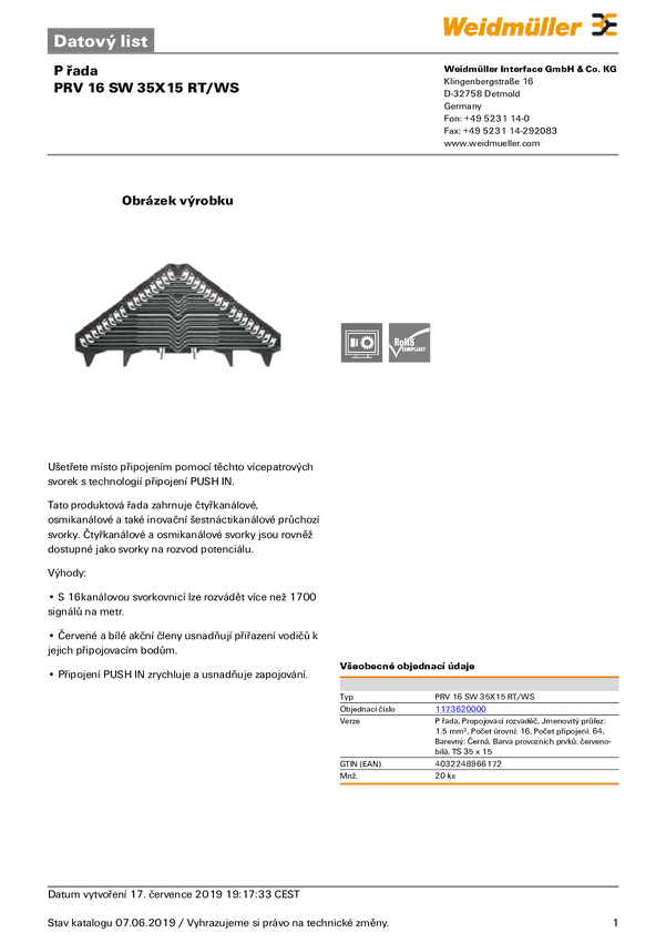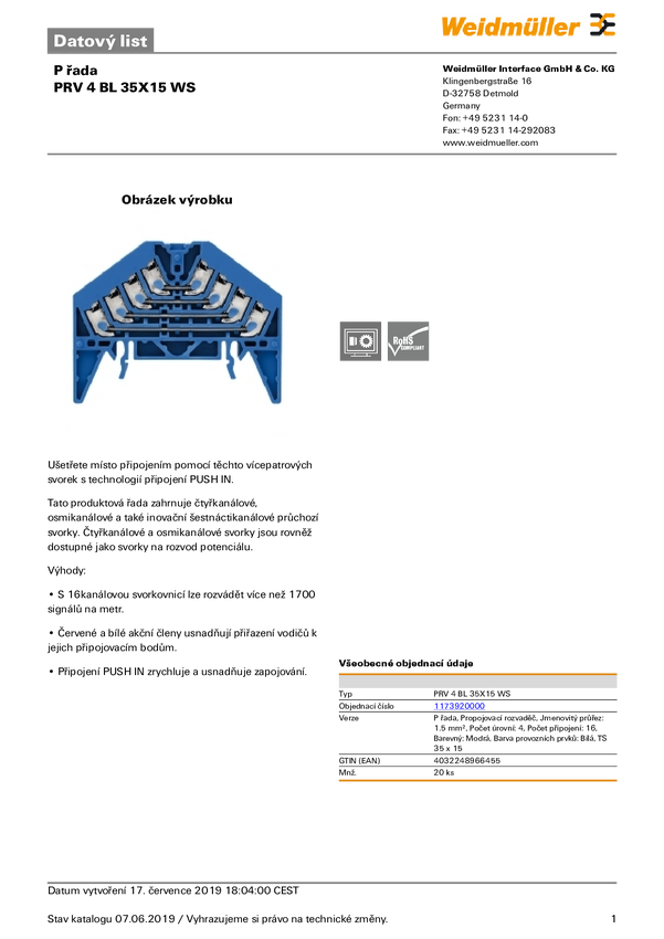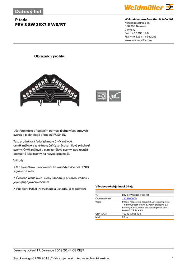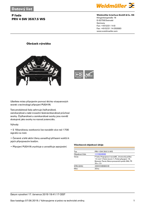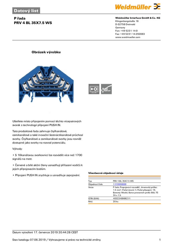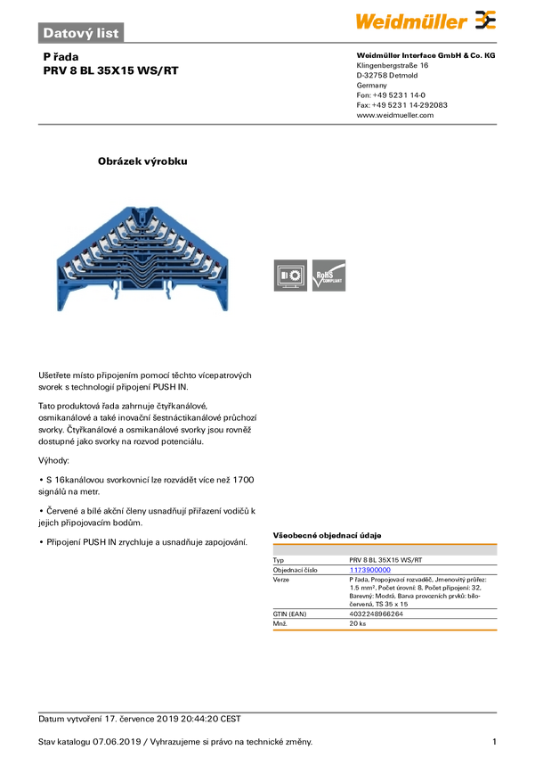 Skrzynka dystrybucyjna Weidmüller 1173710000 zacisk push-in 20 szt.