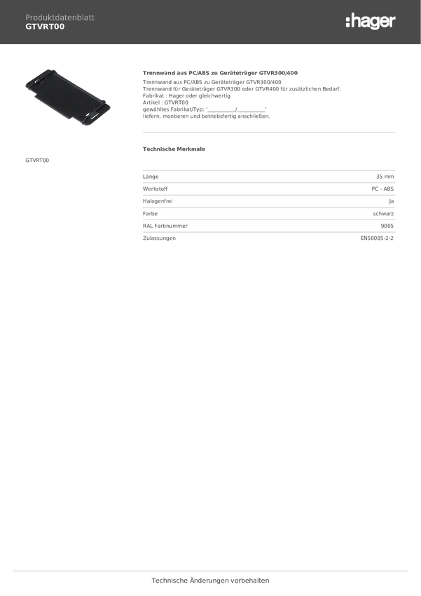 GTVRT00 Ścianka działowa Tehalit 1 szt.