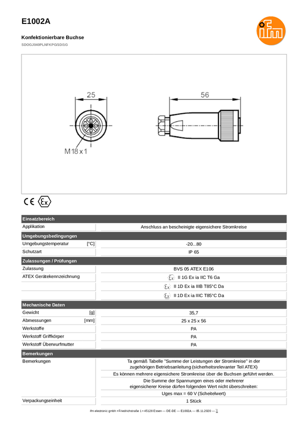 ifm Electronic E1001A Złącze niekonfekcjonowane czujnika/aktuatora E1001A, piny: 7, 1 szt.