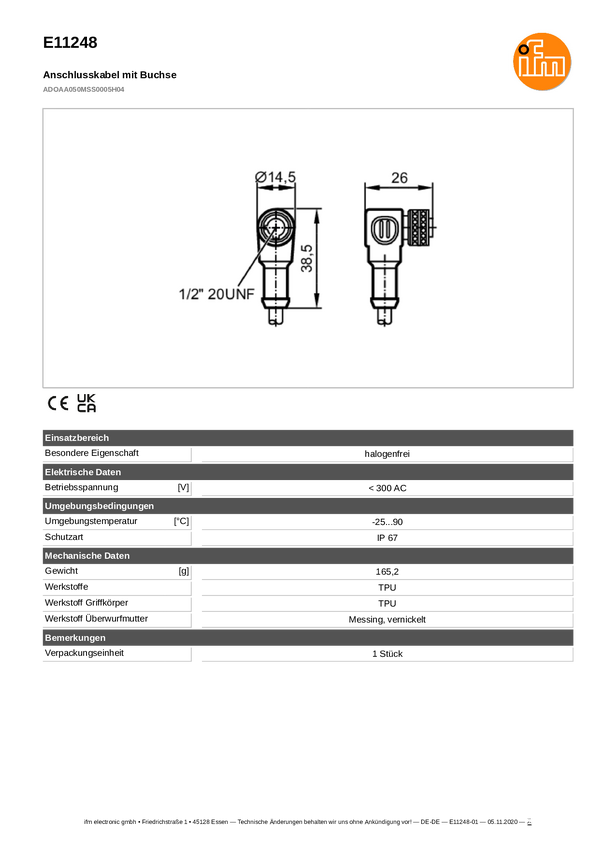 ifm Electronic E11248 Kabel połączeniowy E11248, piny: 5, 5 m, 1 szt.