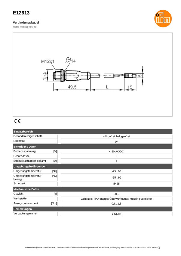 ifm Electronic E12613 Linia połączenia 0.5 m 1 szt.