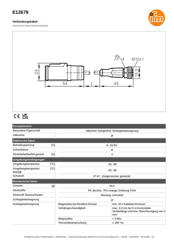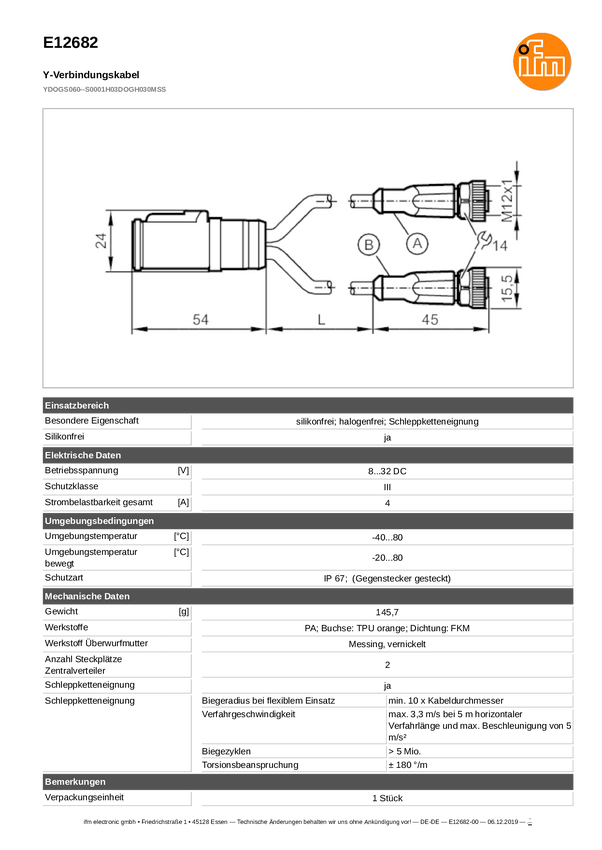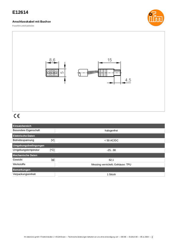 ifm Electronic E12614 Kabel połączeniowy 2 m 1 szt.