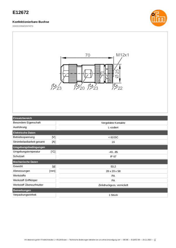 ifm Electronic E12672 Złącze niekonfekcjonowane czujnika/aktuatora E12672, piny: 5, 1 szt.