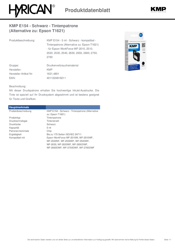 atrament KMP E154 1621,4801, 1 szt.