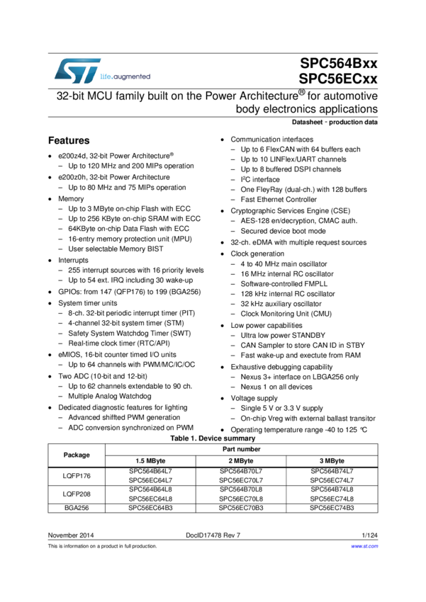 MCU 32-Bit SPC56EL60x e200z4d CISC 1MB Flash 3.3V/5V 144-Pin LQFP T/R