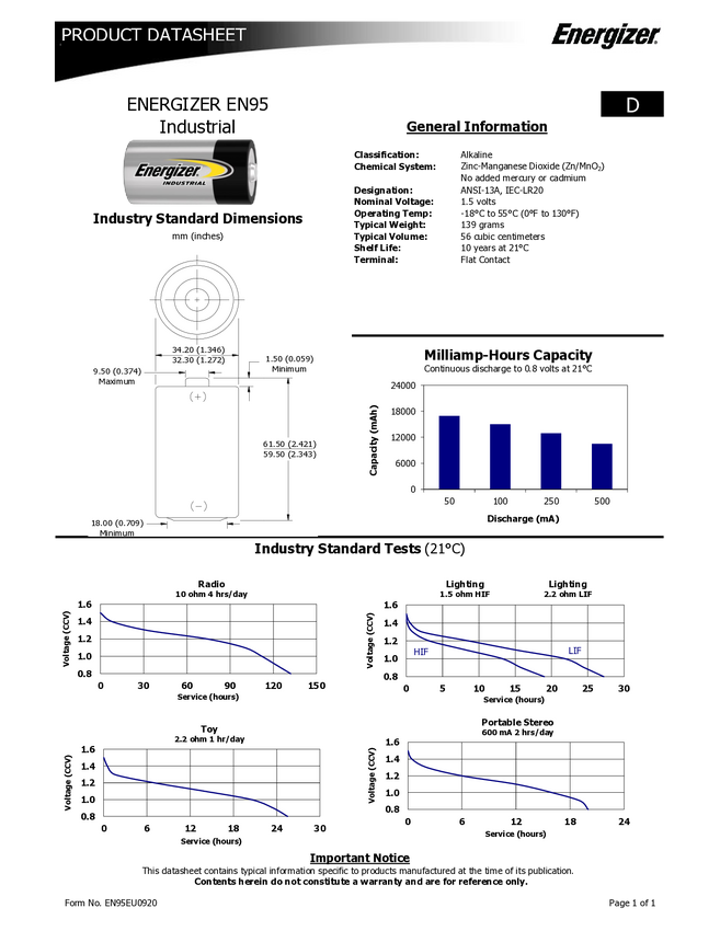 Bateria D/R20 Energizer Industrial LR20 E300716803, 1.5 V, alkaliczno-manganowe, 12 szt.