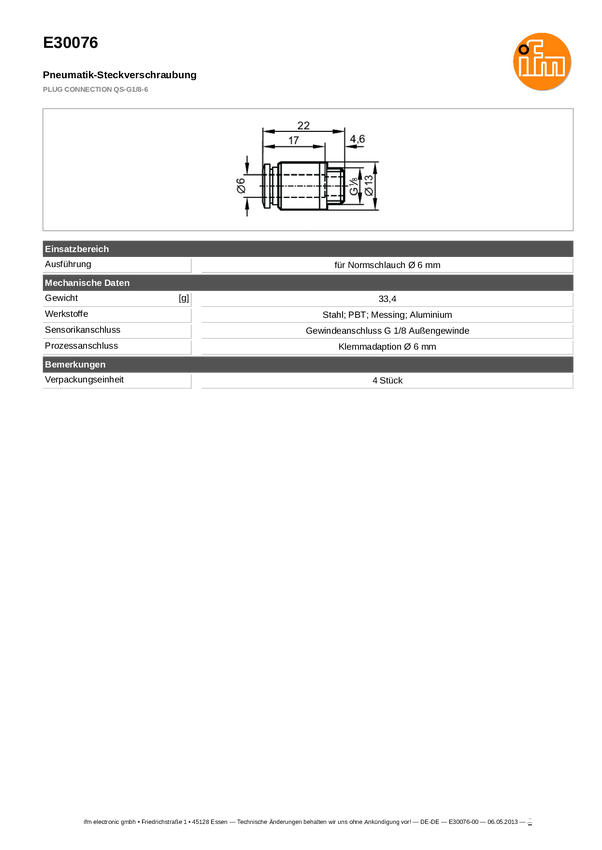 ifm Electronic E30076 Złącze czujnika/aktuatora E30076, 4 szt.