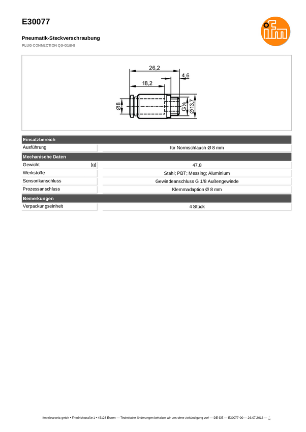 ifm Electronic E30077 Złącze czujnika/aktuatora E30077, 4 szt.