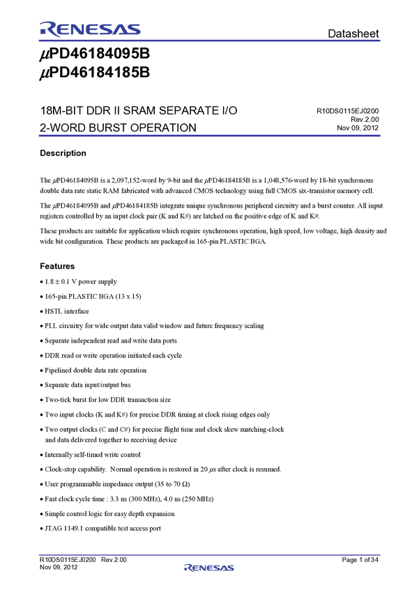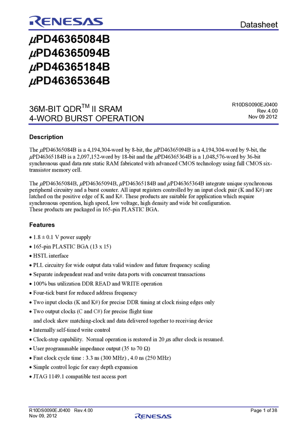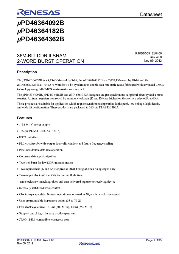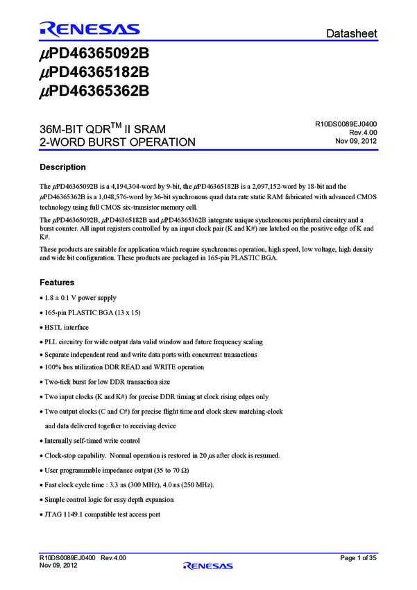 QDRII/DDRII/ QDRII+/DDRII+ SRAM