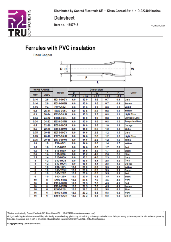 TRU COMPONENTS 1091278 Końcówka rurkowa E60-12YL, z częściową izolacją , 6 mm² x 12 mm, 100 szt.