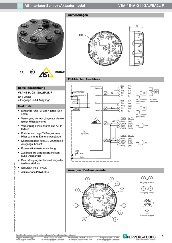 Rozdzielacz czujnik / element wykonawczy, aktywny Pepperl+Fuchs VBA-4E4A-G11-ZAJ/EA2L-F 220206 1 szt.
