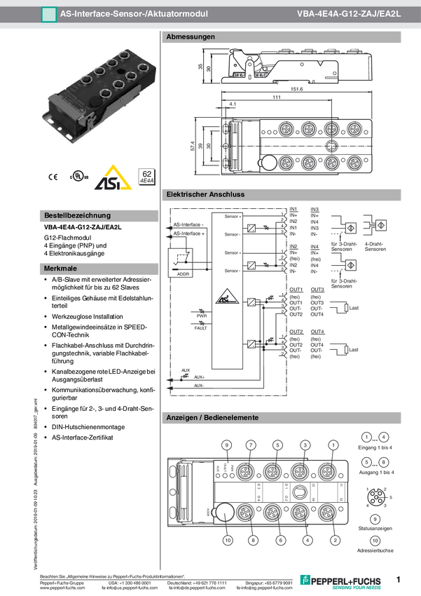 Rozdzielacz czujnik / element wykonawczy, aktywny Pepperl+Fuchs VBA-4E3A-G12-ZAJ/EA2L 201888 1 szt.