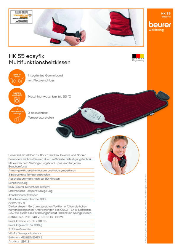 Poduszka elektryczna Beurer 21413 HK 55 Easyfix 100 W