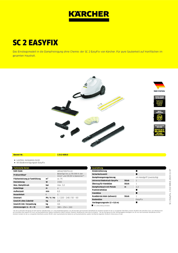 Myjka parowa Kärcher Home & Garden SC 2 EasyFix 1500 W biały, czarny