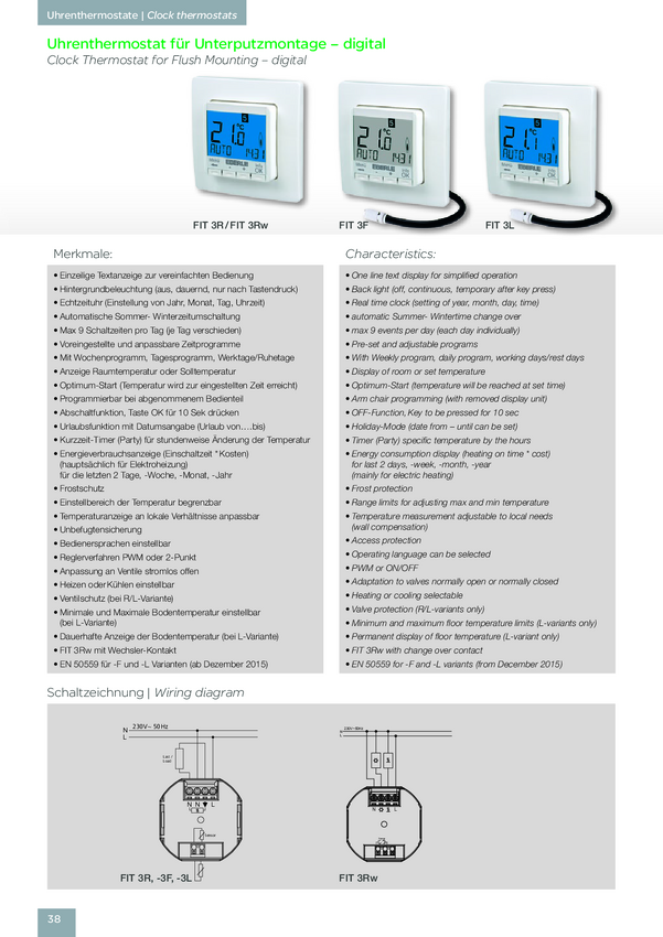 Termostat pokojowy Eberle UTE 3800-U-RAL9010-G-55 557816054500 podtynkowy Ogrzewanie/chłodzenie 1 szt.
