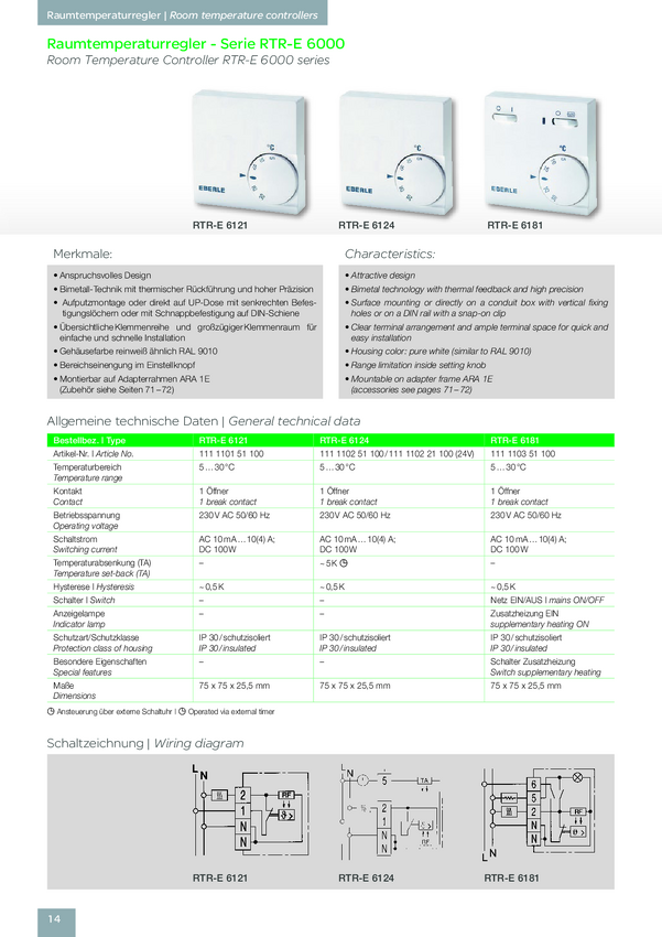 Termostat pokojowy Eberle RTR-E 6724 111 1707 51 100 nadtynkowy 1 szt.