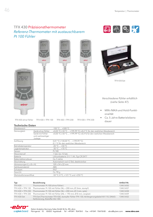 ebro Czujnik temperatury Kalibracja (ISO) Rodzaj czujnika Pt100