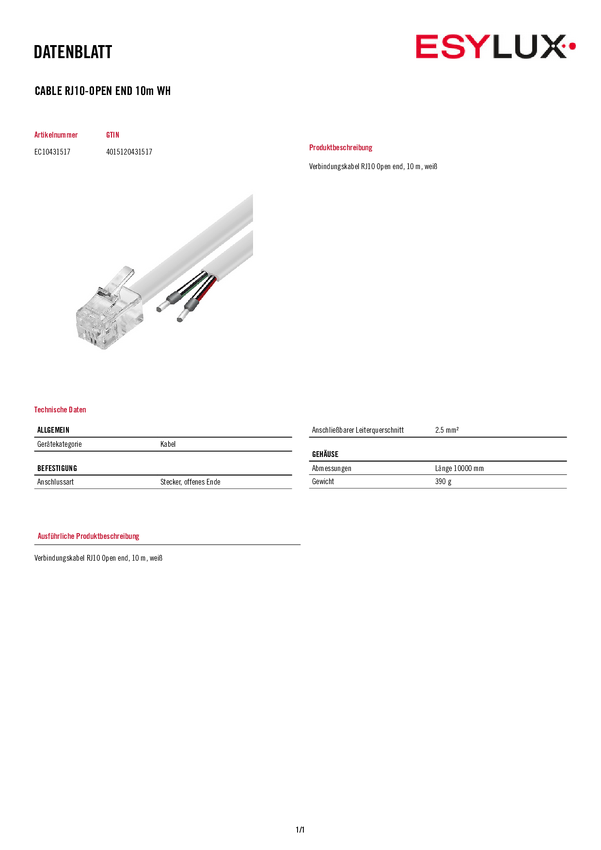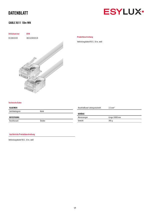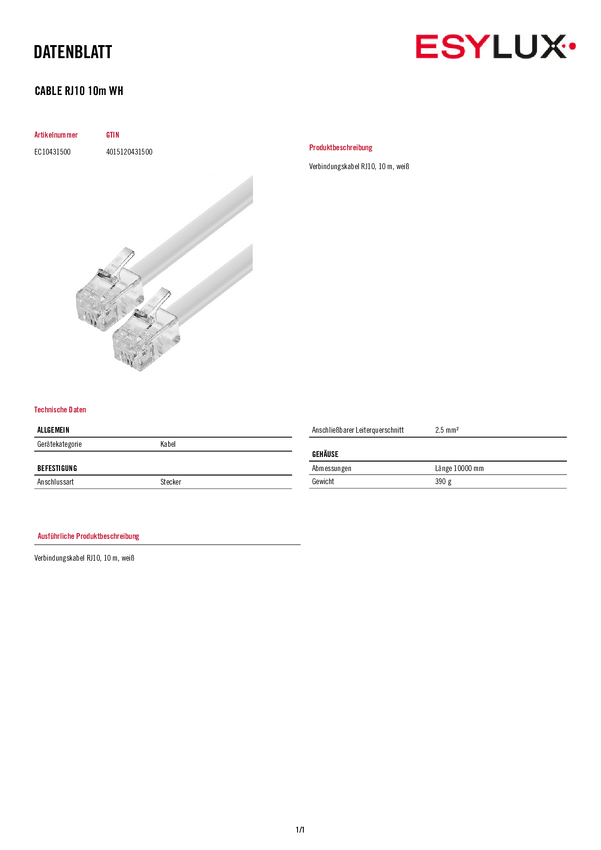 Przewód połączeniowy ESYLUX EC10431524 EC10431524, 1 szt.